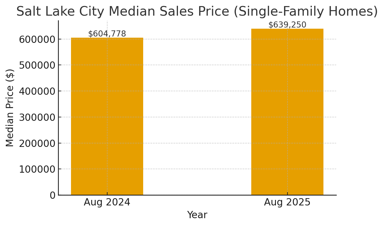 SLC Median Sales Price (SFH, Aug 2025): $639,250