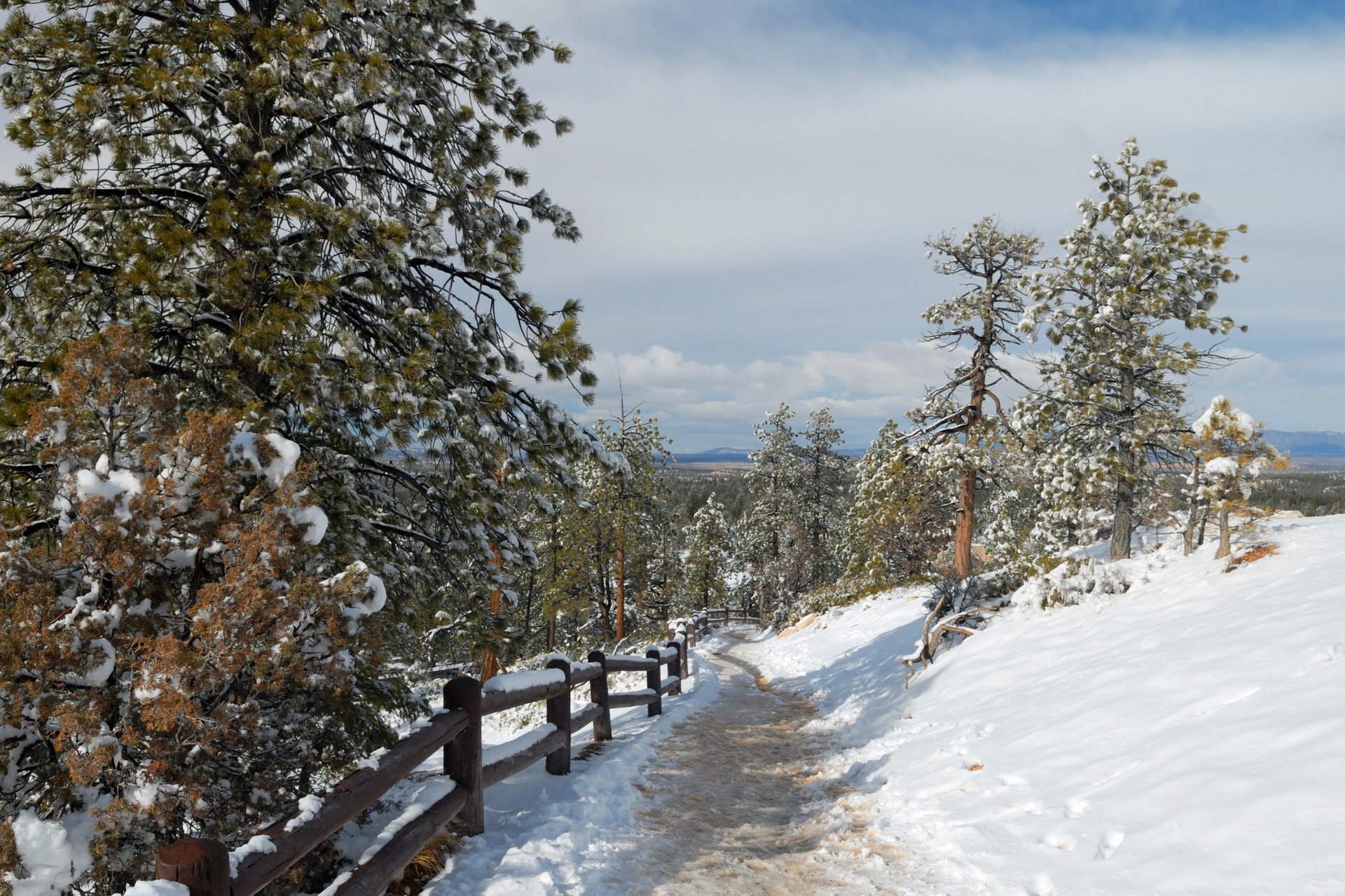 Even on light-snow days, the lower canyon area offers gentle winter scenery.